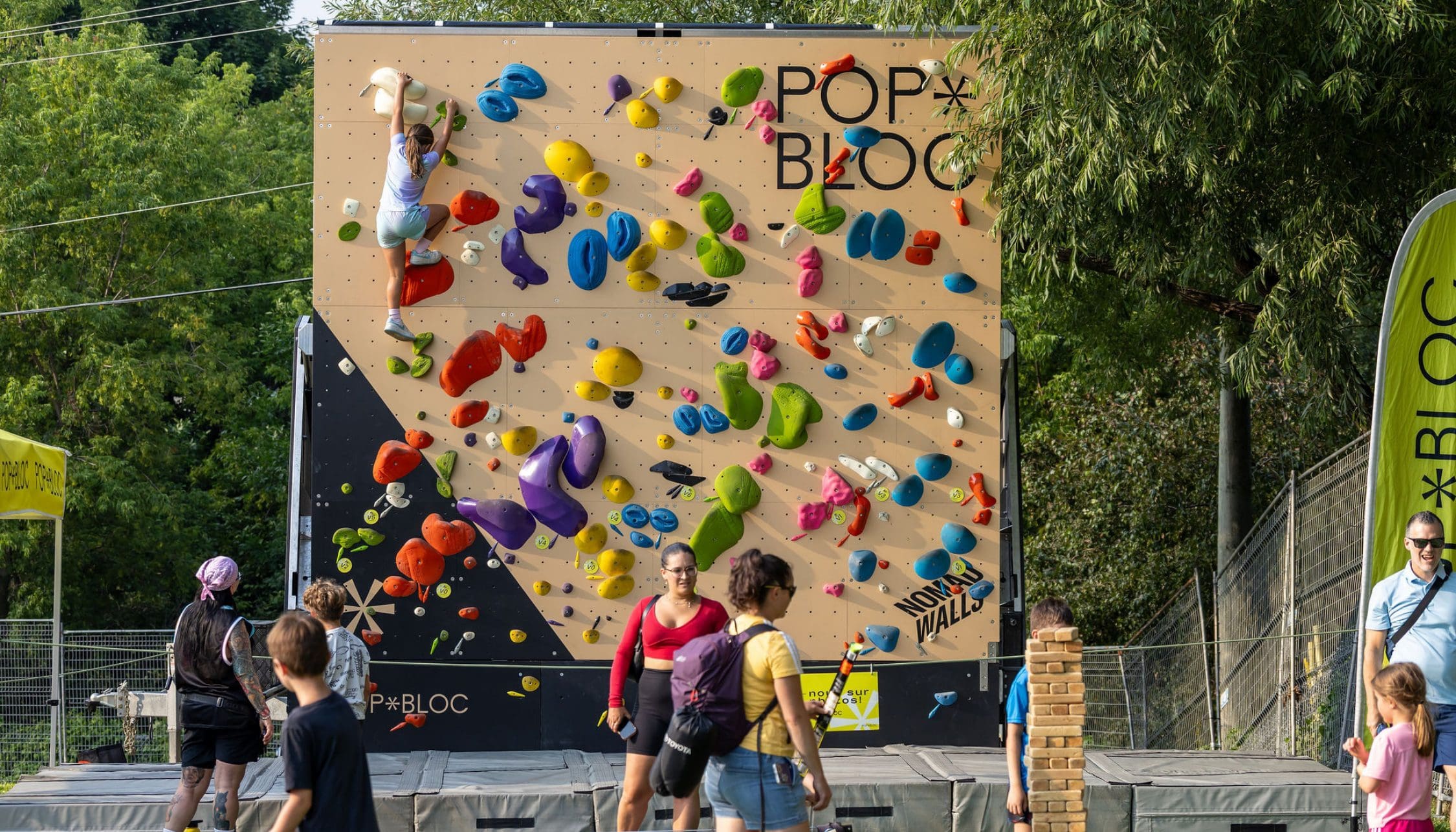 Découvre le mur d’escalade Pop Bloc, une activité parfaite pour une première initiation à l’escalade ! Grimpe à ton rythme, en toute sécurité, et relève un défi accessible et amusant, adapté aux enfants. Une activité idéale pour bouger et voir le Festivent sous un autre angle !